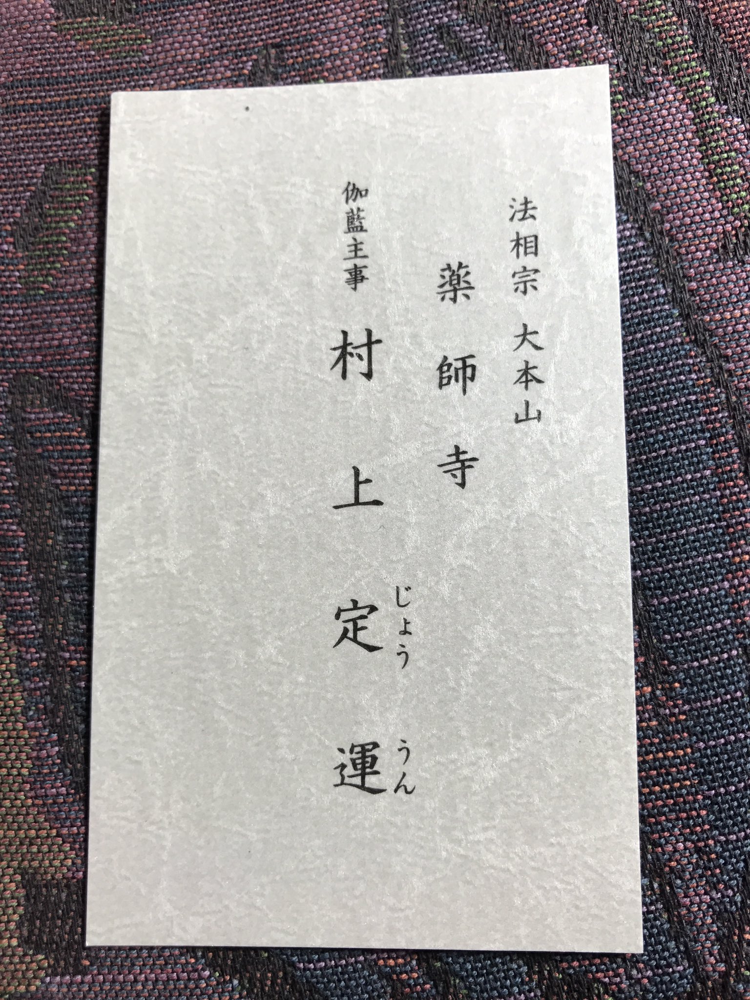 岐阜善光寺ご住職の名刺 organ活版印刷室
