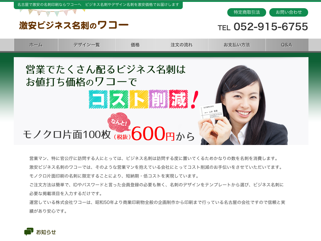 ビジネス名刺印刷のワコー 制作事例 a blog cms