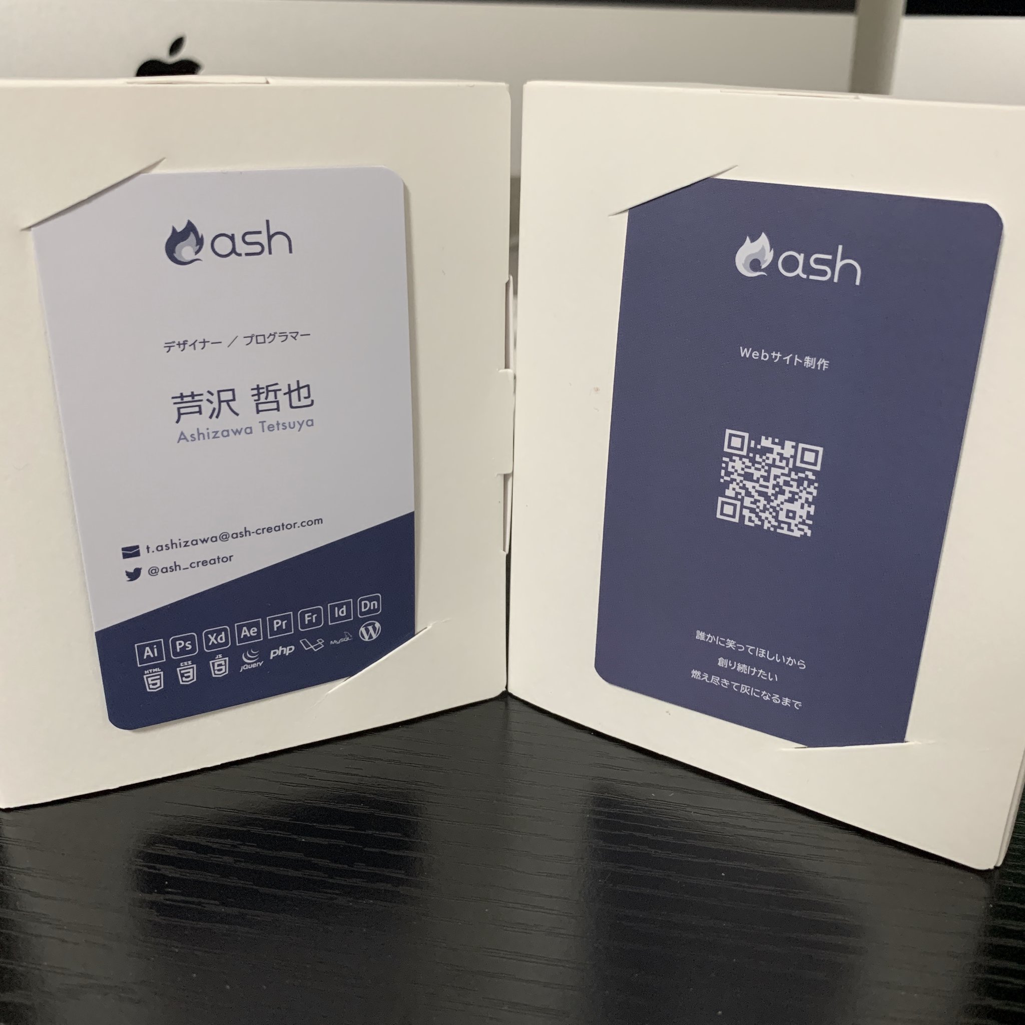 あしざわ cssの変態 デザイナー プログラマー on twitter new名刺届きましたー omiyawebdesignさんご提案の マットコートにしました いやもうめっちゃいい サイトと同じ質感出せた 一気に200枚発注して正解 ちょっと青味強くなっちゃったけど