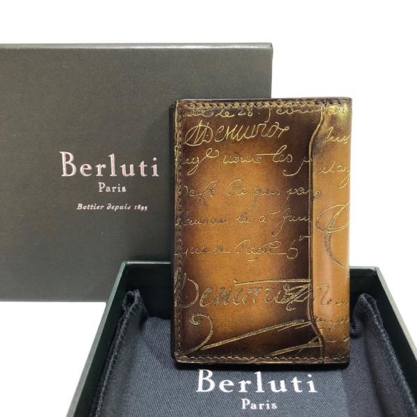 極美品 ベルルッティ berluti カードケース 名刺入れ パスケース カリグラフィ ブラウン オレンジ アトランティス