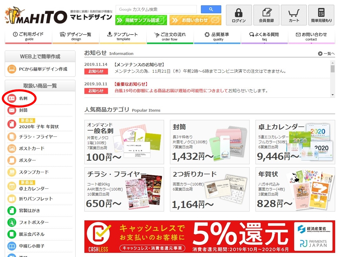 名刺作成会社hpのデザインサンプルページ一覧