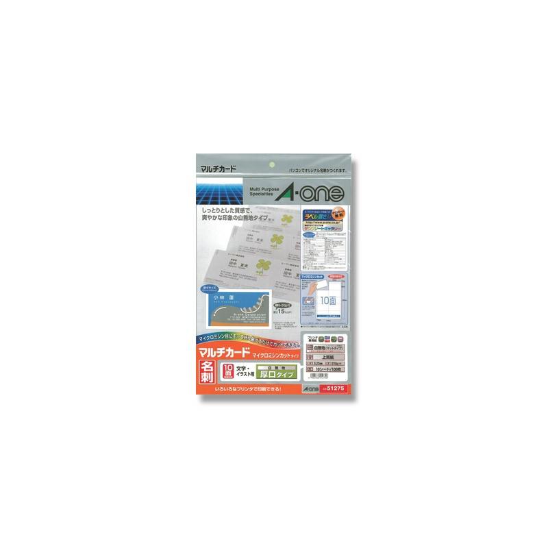 エーワン マルチカード 名刺用紙 ミシン目 両面 プリンタ兼用 マット紙 白 厚口 a4 10面 1袋 10シート入 51275