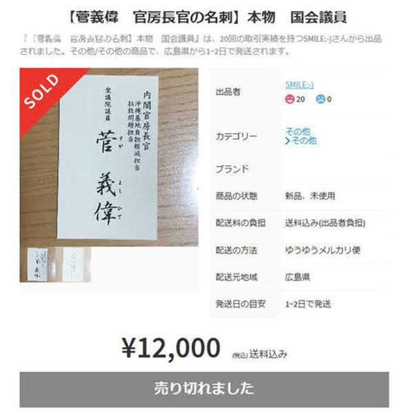 任日本首相后菅义伟名片在日版闲鱼网炒出高价 手机新浪网