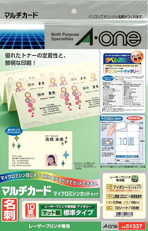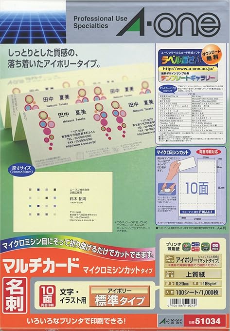 エーワン マルチカード名刺サイズ アイボリー a4 10面 10シート 51463が382円 ココデカウ