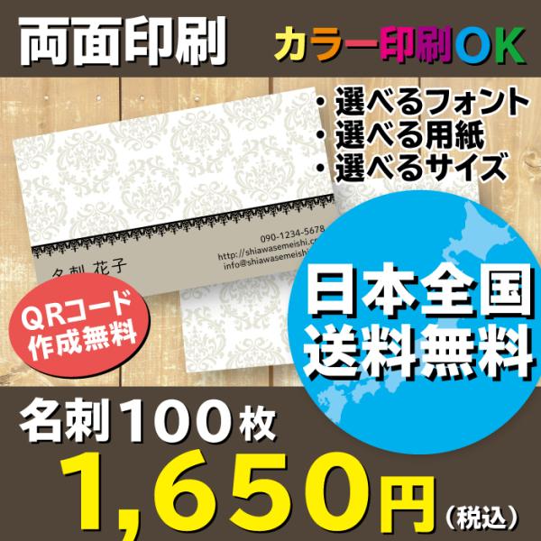 ダマスク柄名刺 ベージュ しあわせめいし かわいい名刺とショップカードのお店