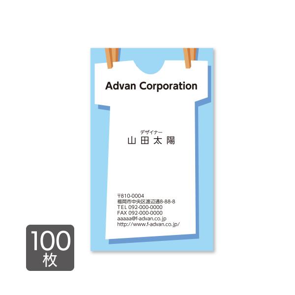 クリーニング店名刺 青空に真っ白な洗濯物がなびいて 爽やかなイメージの