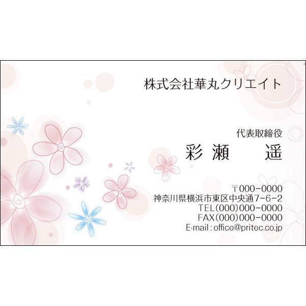 名刺 横型 100枚セット 無料テンプレート 両面名刺 花柄作例詳細 オリジナルプリント