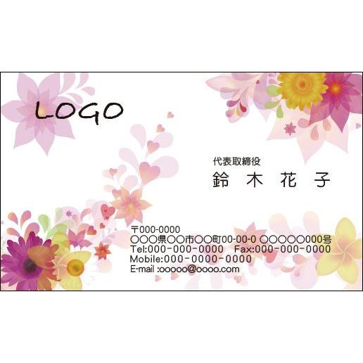 名刺印刷 フラワー名刺 花柄 カラー 名刺 作成 ショップカード イメージ校正無料 メール便 送料無料 100枚 データ保障あり 用紙が選べる デザイン名刺 dm flour y003 ココロズ楽天市場店