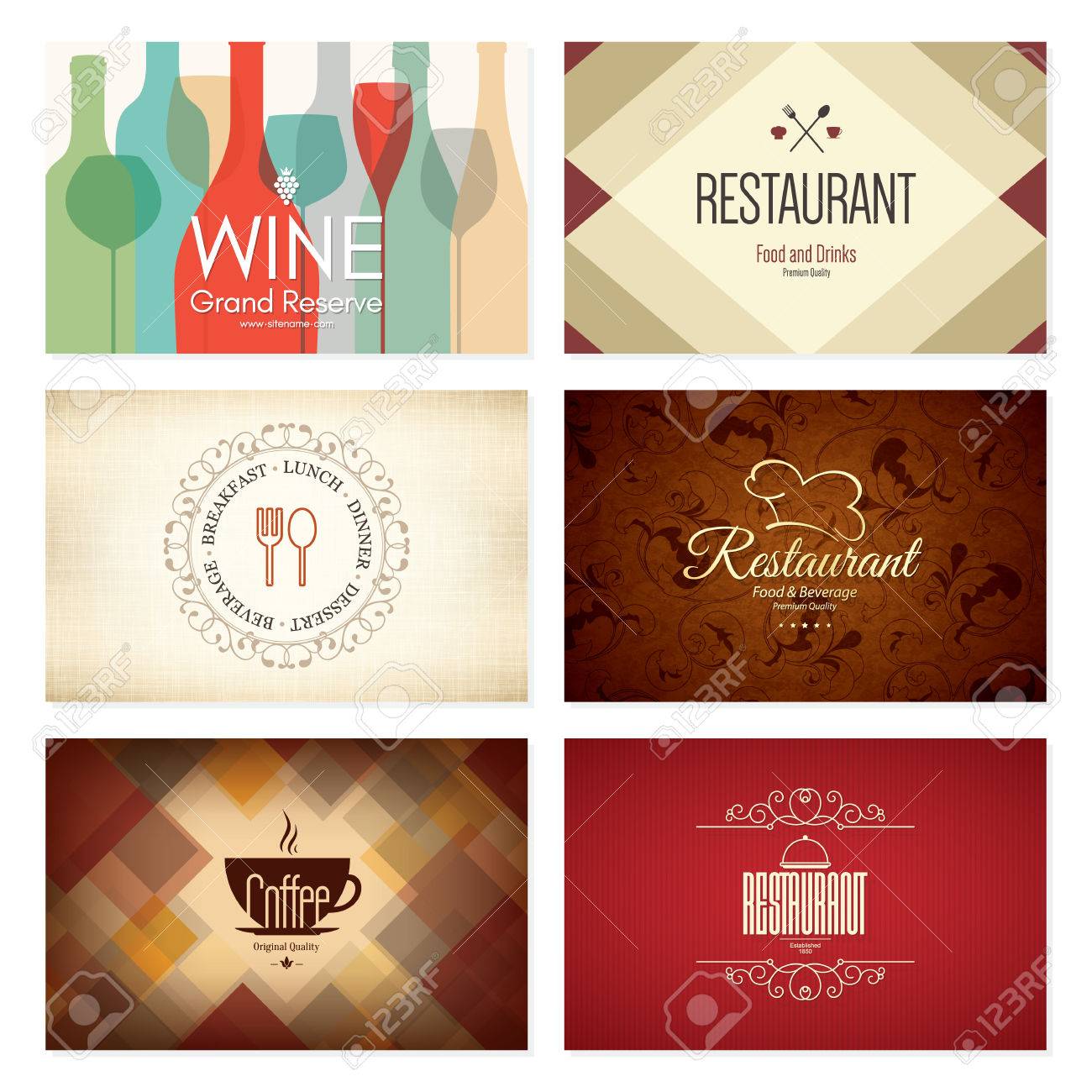 ビジネス カードを設定します 6 明るい名刺 食べ物や飲み物のテーマ カフェ コーヒー ハウス レストラン バーの