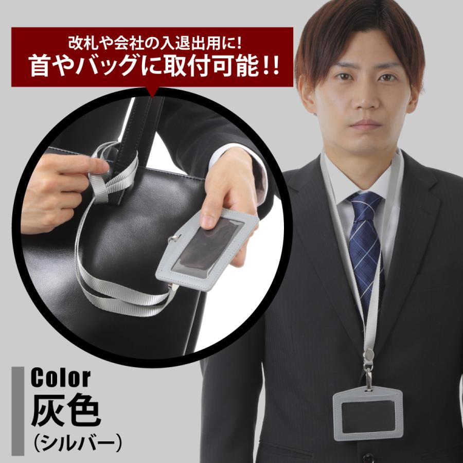 idカードホルダー 社員証ケース 名刺入れ スイカケース 革 ブランド 縦型 裏表 両面 3枚 収納 軽い リール クリップ ストラップ 伸びる 首紐 裏返らない 名刺 社員証 女性 男性