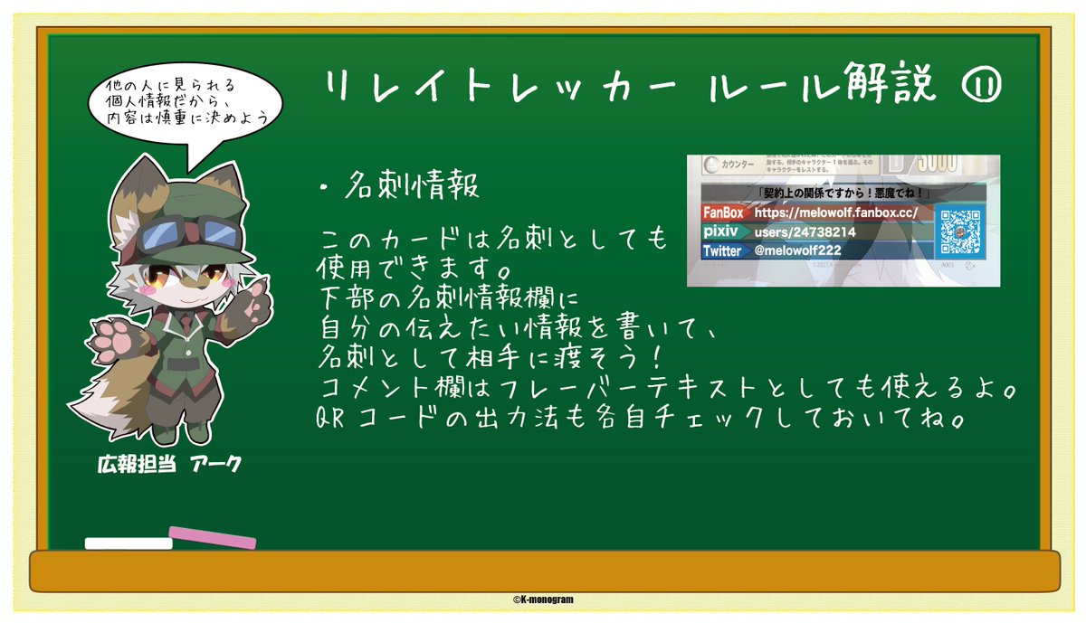 kーmonogram on twitter リレトレ ルール解説 名刺情報 本日のルール解説は ルール カードの名刺欄についての紹介です 注文予定の方はこちらも忘れずに
