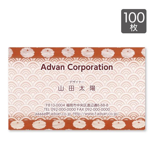 名刺印刷 作成 ショップカード カラー100枚 テンプレートで簡単作成 和風 初めての作成でも安心 和の織物 菊と亀甲