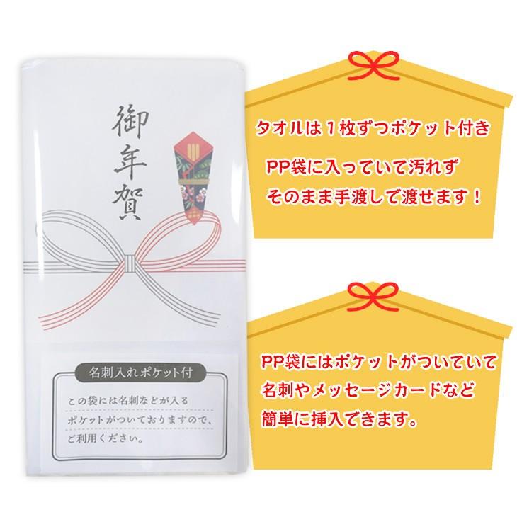 お年賀タオル5枚セット 白タオル 名刺ポケット付き 新年のご挨拶 タオル問屋 泉福本店