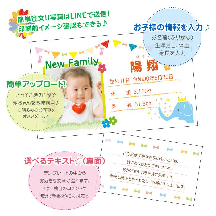 楽天市場 lineで簡単 40枚 出産報告 出産内祝い 写真入り 出産 内祝い 内祝 メッセージカード メッセージ カード ハガキ 名刺サイズ 命名紙 命名書 誕生 出産 赤ちゃん お返し ギフト 写真 子ども 男の子 女の子 名入れ 命名 印刷 オリジナル 報告 記念品 monolike