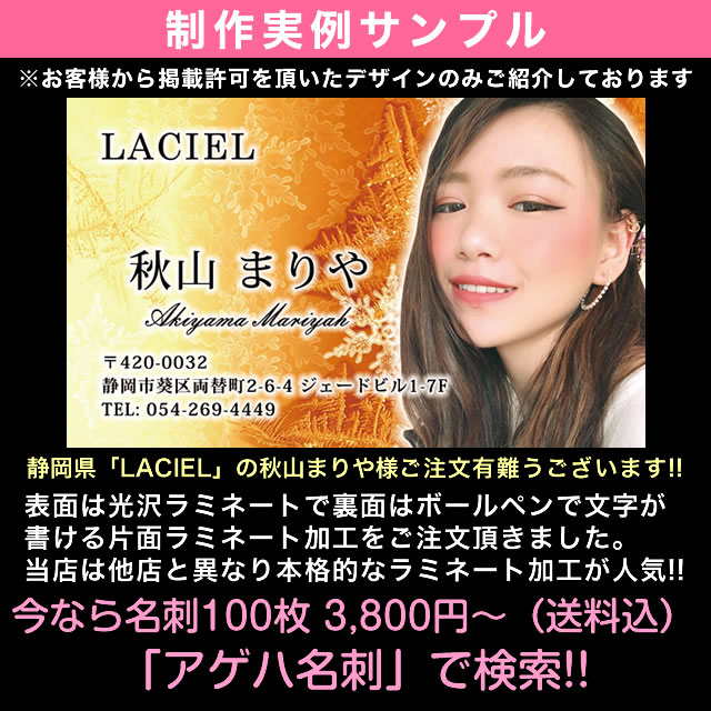 アゲハ名刺ドットコム on twitter 掲載にご承諾を得ている名刺サンプルを紹介をさせて頂きます 本日ご紹介させて頂くのは静岡県 laciel の秋山まりや様 本格的なラミネート加工の評判が良く キャバ嬢さんや風俗嬢さん セラピストさんに当店の名刺制作が人気の