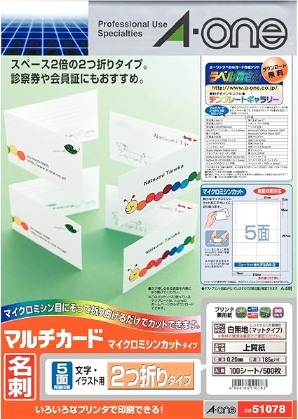 amazon エーワン マルチカードa4 名刺二つ折5面10枚 5 名刺用紙 文房具 オフィス用品