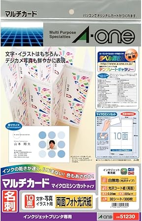エーワン マルチカード 名刺用紙 両面 光沢紙 300枚分 51230