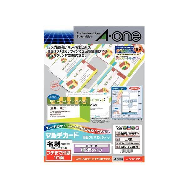 エーワン マルチカード 名刺用紙 クリアエッジ 両面 プリンタ兼用 マット紙 白 少厚口 a4 10面 1袋 50シート入 51892 取寄品