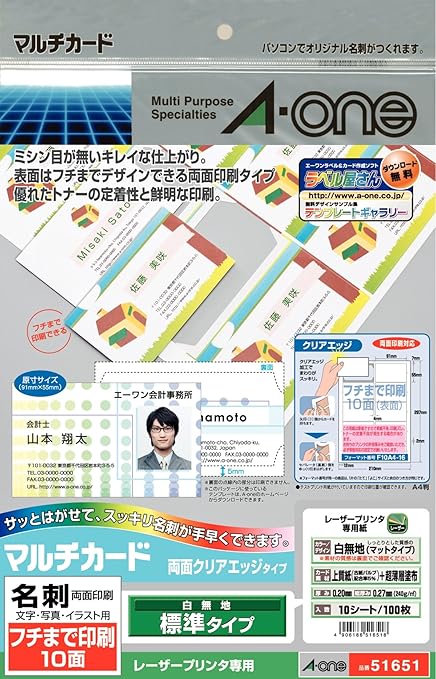 amazon co jp限定 エーワン 名刺 マルチカード クリアエッジ 厚口 51861タイプ 150枚分