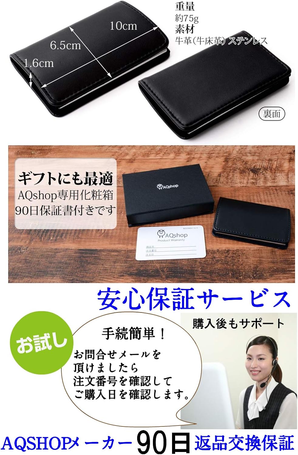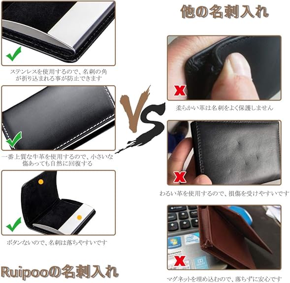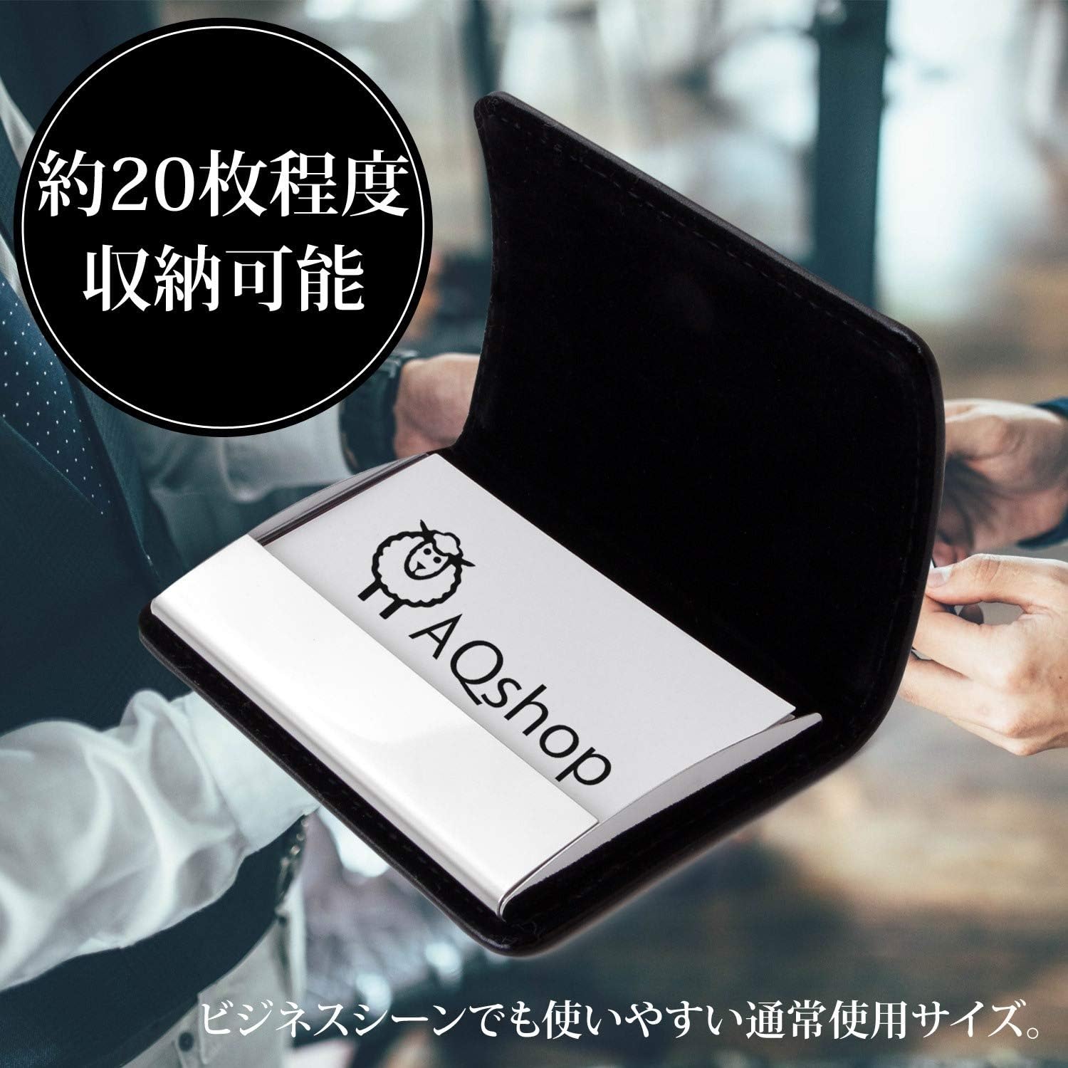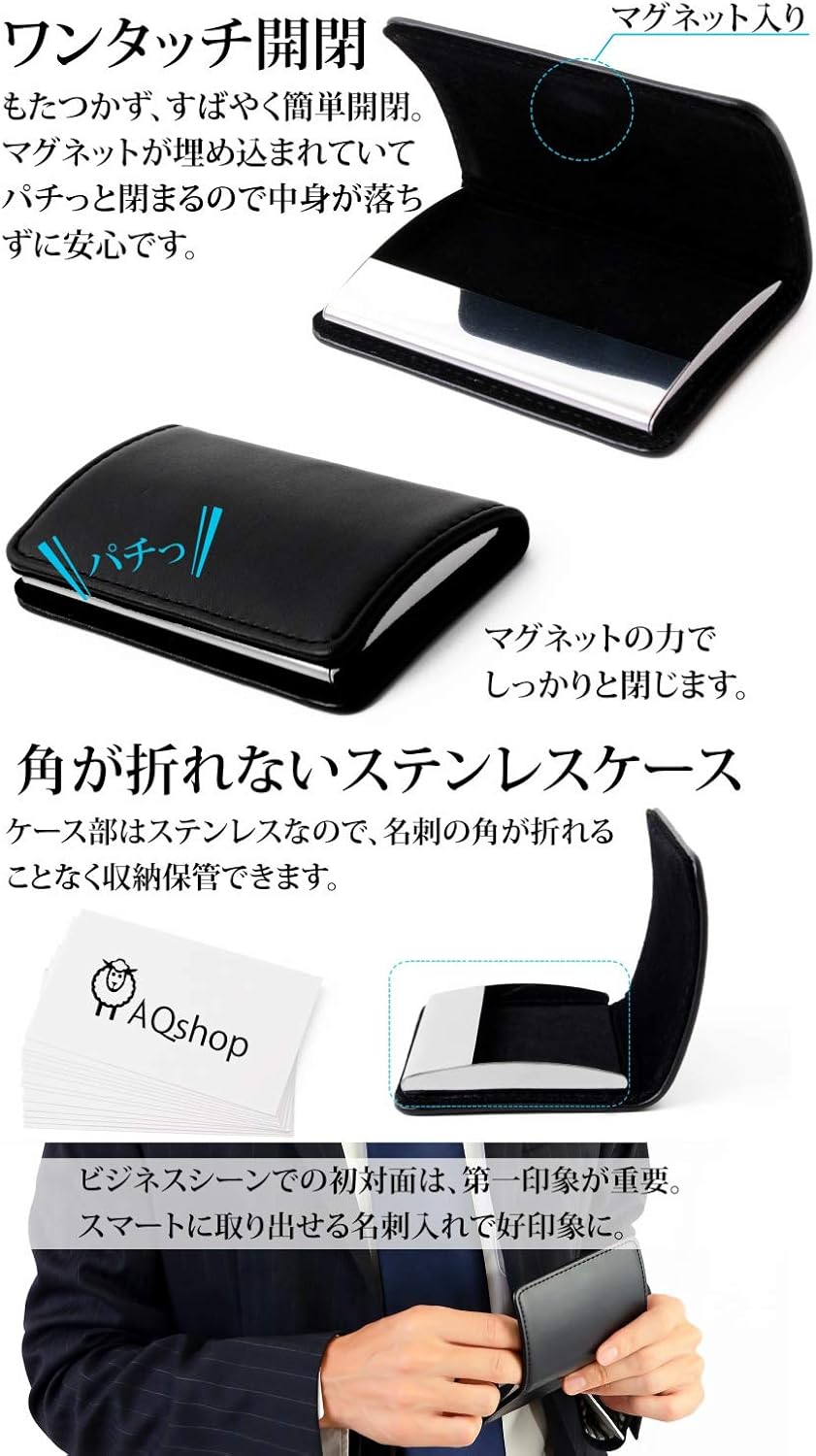 aqshop 1秒開閉 名刺入れ メンズ 牛革 角が折れない 名刺ケース ビジネス