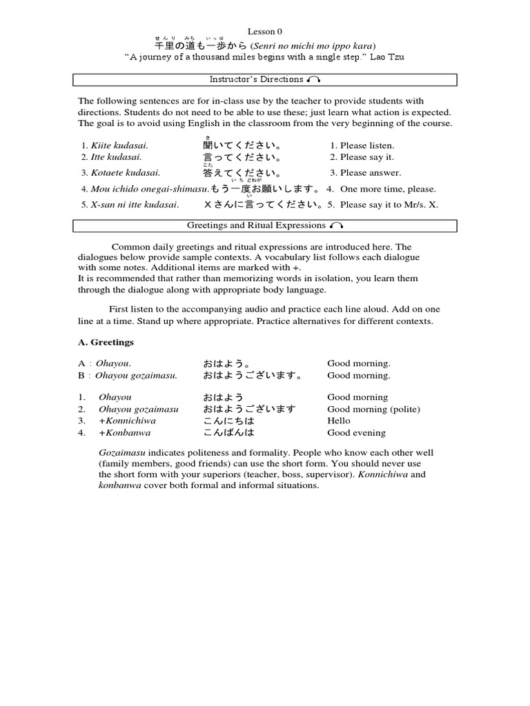 notes for japanese lesson