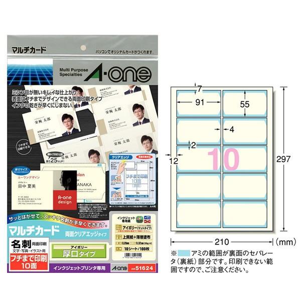 エーワン 名刺 マルチカード 両面クリアエッジ 厚口 フチまで印刷 100枚分 51604