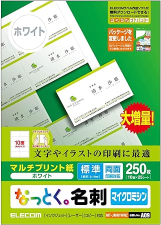 amazon エレコム 名刺用紙 マルチカード a4サイズ マイクロミシンカット 250枚 10面付 25シート 厚口 両面印刷 インクジェットマット紙 日本製 お探しno a15 mt hmn2wnz 文房具 オフィス用品 文房具 オフィス用品